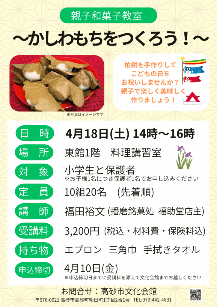 特別ワークショップ 親子和菓子教室「かしわもちをつくろう!」受講生募集
