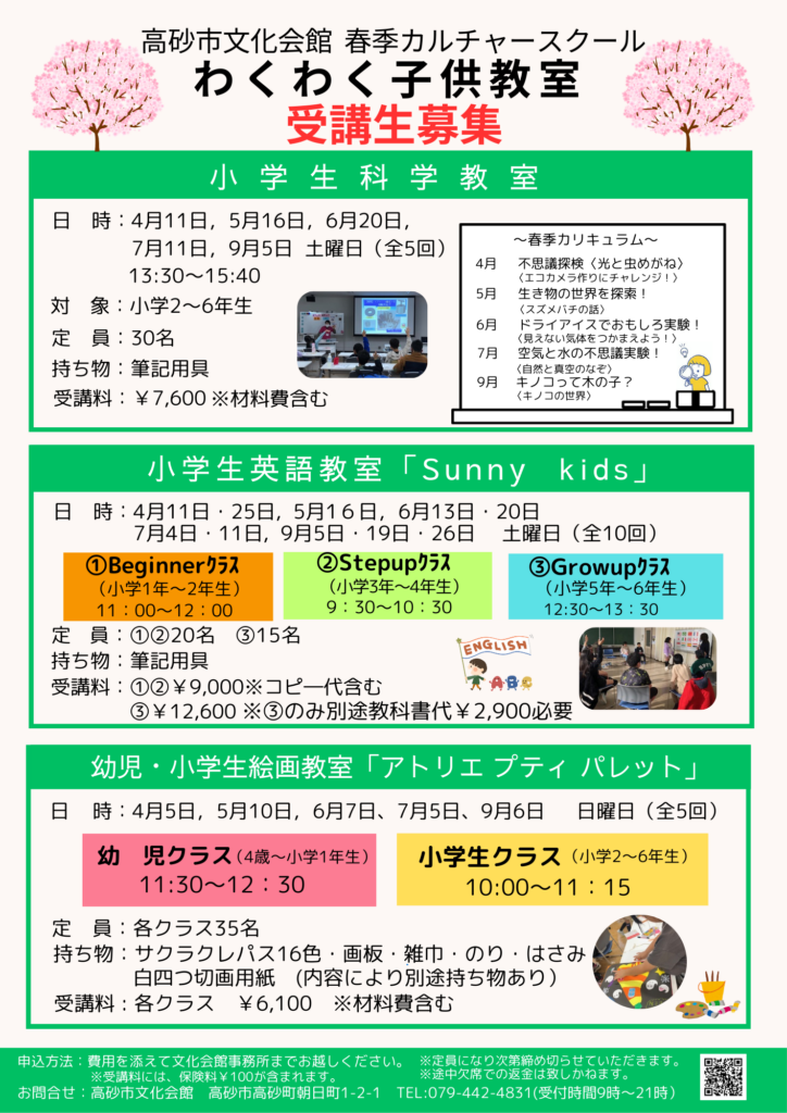 R8春季カルチャ―スクール&わくわく子ども教室受講生募集